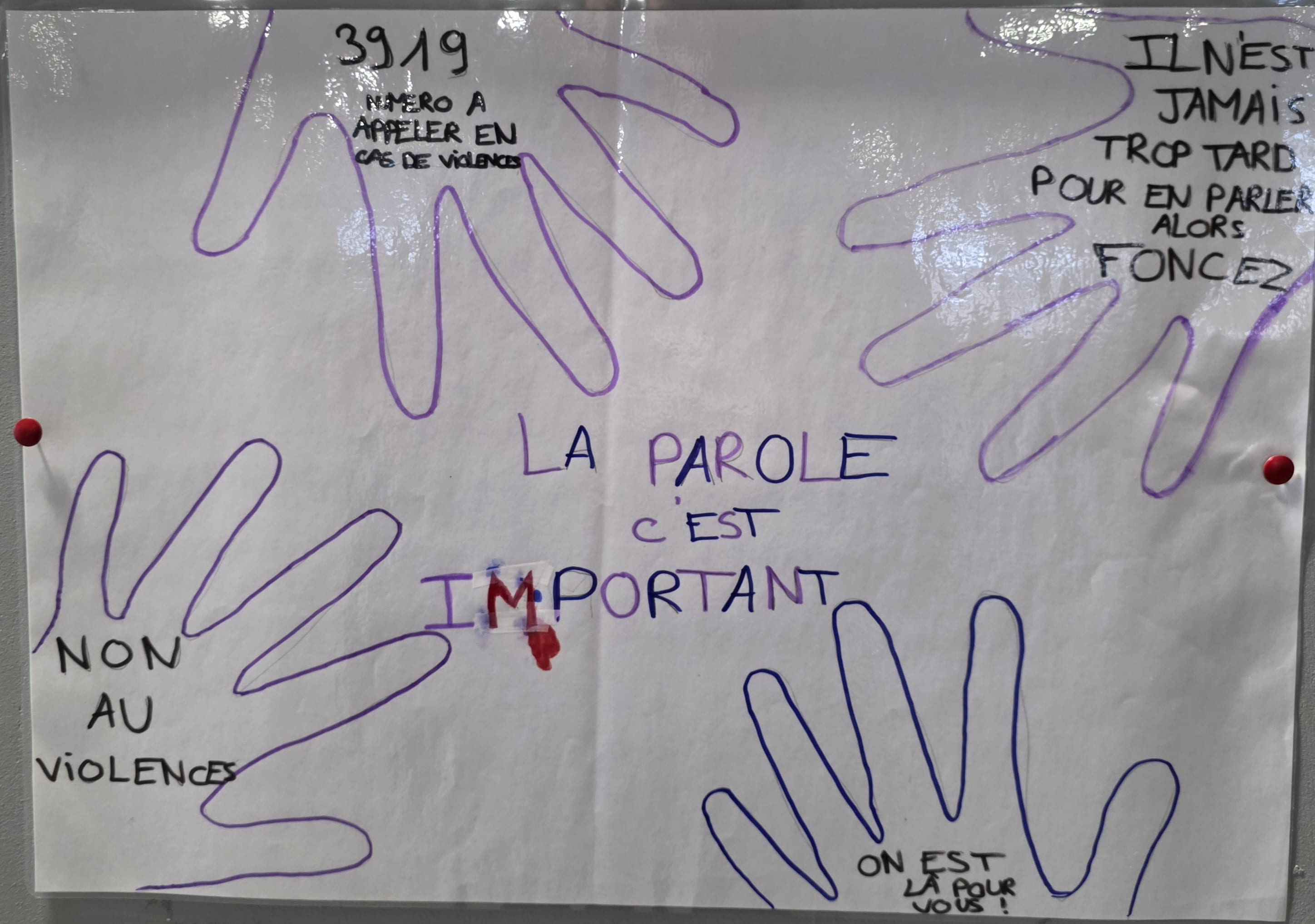 Dans le cadre de la journée internationale de lutte contre les violences faites aux femmes, célébrée ce 25 novembre, l’ensemble du collège s’est mobilisé pour sensibiliser les élèves et les aider à mieux comprendre les enjeux de cette cause essentielle.