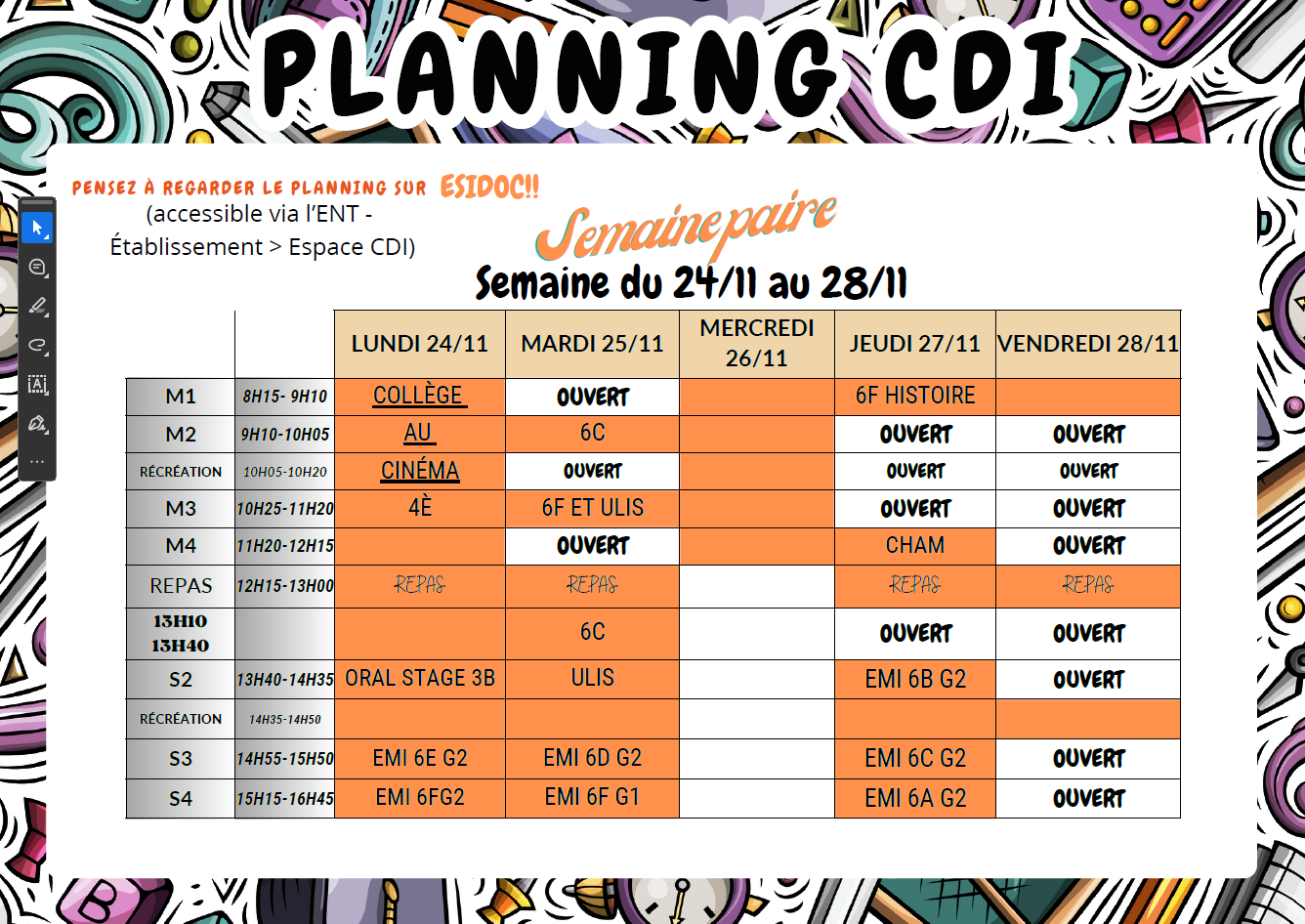 Planning CDI semaine du 24/11 au 28/11